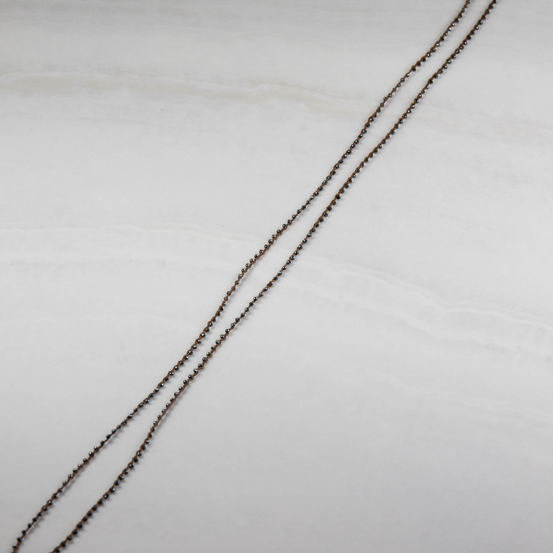 The design incorporates lustrous  strand of uniform, micro-faceted 2mm black spinels. These tiny, brilliant black gemstones provide a sophisticated shimmer and elegant dark luster throughout the entire piece.